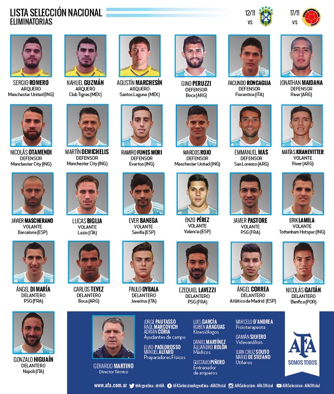 The withdrawals of both has prompted Martino to give recalls to two Argentine-based players – River Plate’s Jonathan Maidana and Boca Juniors’ Gino Peruzzi. Both will report to training at Ezeiza on Monday but have appeared for the senior side before at earlier stages in their careers.