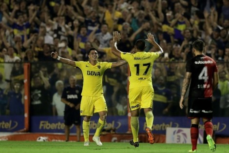 Boca could have added more with Julio Buffarini hitting the post late on but the points were all that mattered. Two wins from games against Gimnasia, Unión and Huracán would be enough to lift the title once more.