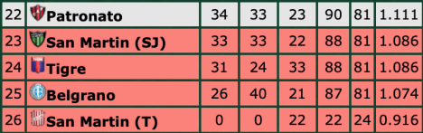 It may yet prove a valuable point ahed of the final weekend and perhaps could have been worse were it not for a point blank save by Luis Ardente to deny Marcelo Estigarribia late on. San Martín had posed enough of a threat of their own to deserve a point but will now be hoping Patronato fail to beat Argentinos Juniors on Sunday while they need a win against Talleres.
